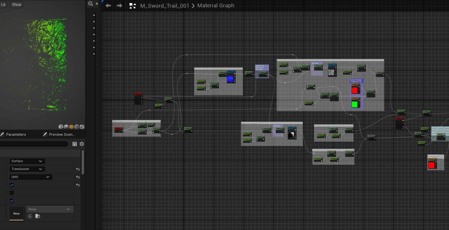 This project features a stylized sword slash trail created in Unreal Engine. I used Material Instance parameters and supporting textures to control the motion, glow, and overall look of the effect. The visual direction was inspired by Kisong Lee’s lecture— for copyright clarity, the base material logic and some textures were adapted from his instructional resources, while all Niagara setup, timing, and integration were done by me.